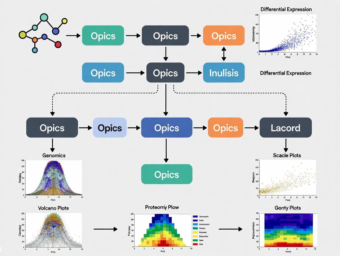 Multi-omics Integration: Combining transcriptomic, proteomic, and metabolomic data through layered volcano plots or parallel coordinate plots could provide more comprehensive understanding of disease mechanisms.